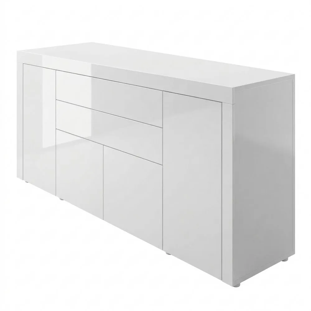 Hochglanz-Kommode mit Türen und Schubladen, Weiß