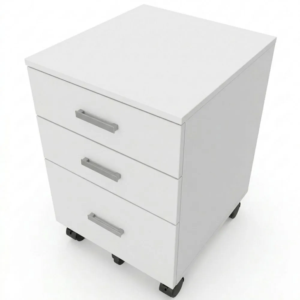 Praktischer Rollcontainer mit 3 Schubladen, Mehrzweck-Aufbewahrungsschrank für Büro und Arbeitszimmer, Weiß