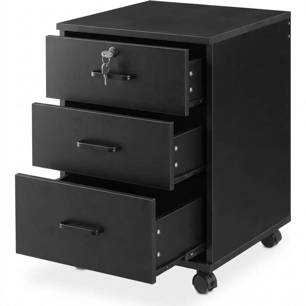 Abschließbarer Rollcontainer mit 3 Schubladen, mobiler Aktenschrank für Dokumente in DIN-A4, B Büromöbel, Schwarz