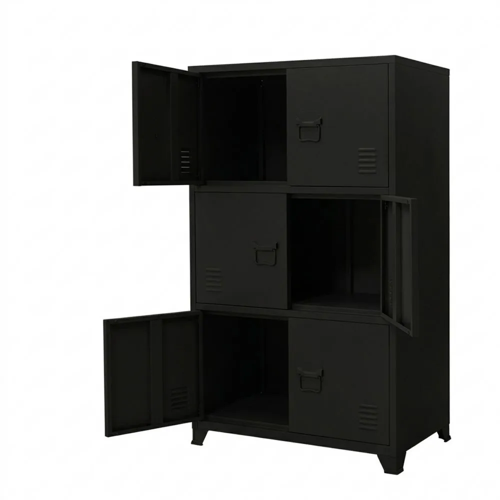 Schwarzer Stahl-Aktenschrank mit 6 Türen und 3 Innenfächern, freistehend